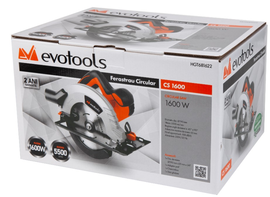 Puternic si compact, ferastraul circular cu motor de 1600W si o turatie de 5500 de rotatii pe minut asigura un randament ridicat la taiere.