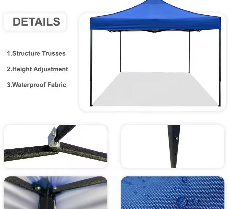 Cu ajutorul acestui cort pliabil din metal, potrivit pentru petreceri in aer liber, cine, gratare. Acest foisor,cort de gradina este extrem de usor de asamblat,doar trebuie intins si este gata de folosit oriunde doriti. Dimensiunile sale compacte permit instalarea langa piscini, in spatii pentru evenimente, expozitii, targuri sau gradina. Acoperisul fiind impermiabil si tot o data protejeaza impotriva razelor solare UV.
