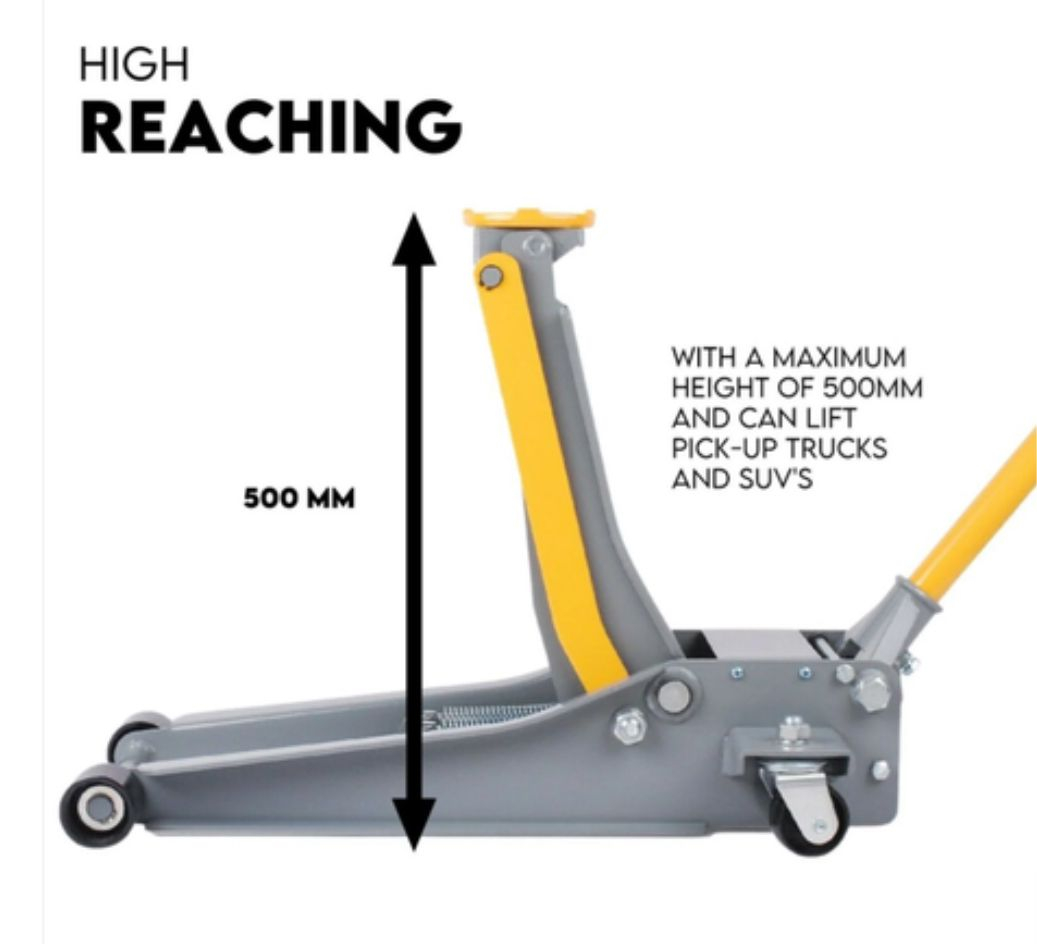 Cric hidraulic 5,5 tone profesional cu roti din metal ofera o manevrabilitate foarte usoara de folosit datorita celor 4 roti din metal structura acestui cric hidraulic este din otel laminat iar inaltimea de ridicare este de 75-500 mm iar cu ajutorul manerului de ridicare cu o lungime de 100 cm nu o sa depuneti efort la ridicare.Acest Cric hidraulic se poate folosi atat pentru uz casnic cat si pentru uz profesional (vulcanizare,atelier auto,mecanica)