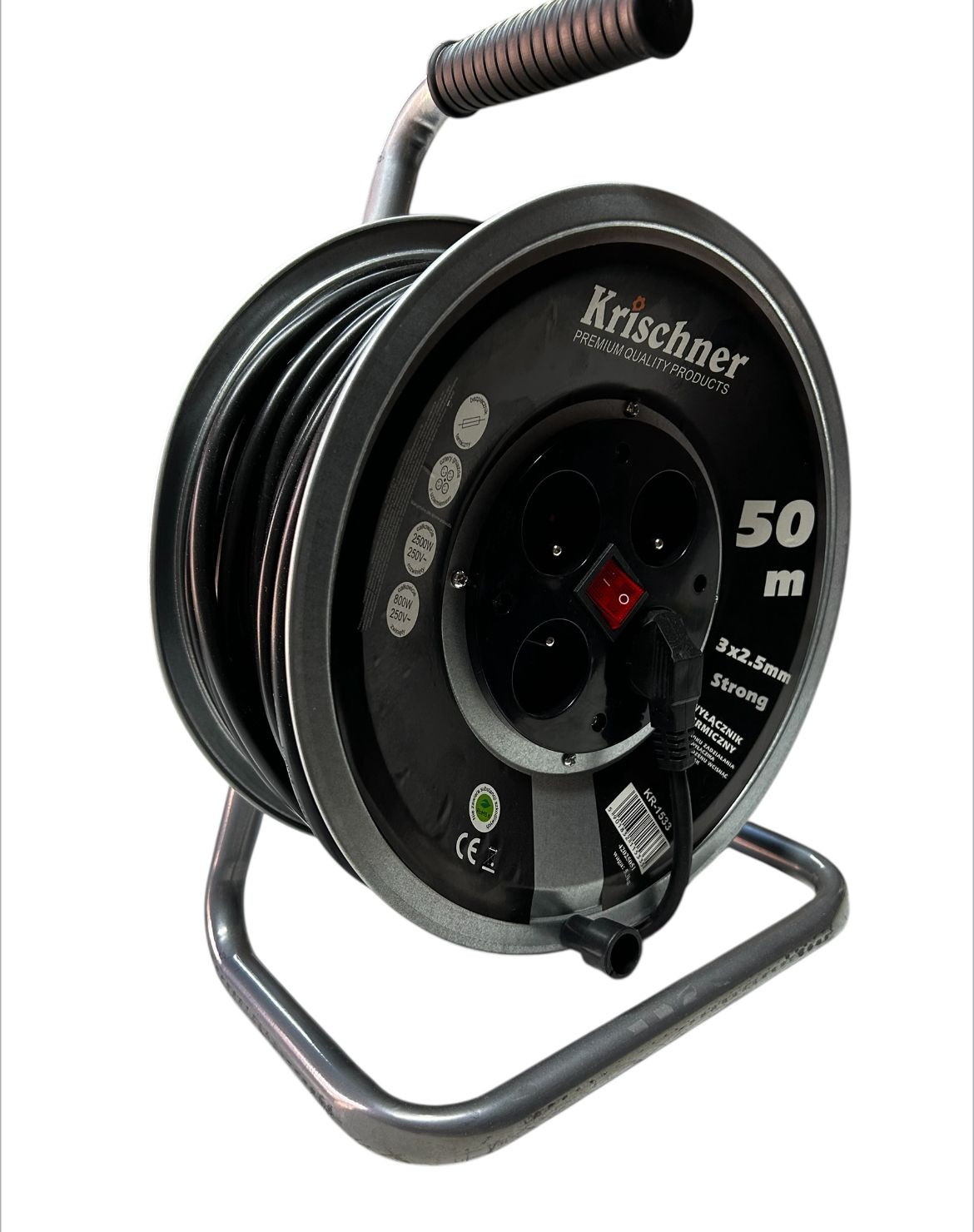 Prelungitor Rola curent Metal 50M 3X2,5 2500W,Krischner cu ajutorul acestui prelugintor cu cablu de 50 metri lungime si cu un tambur de metal care nu se va rupe cum sunt cele din plastic.