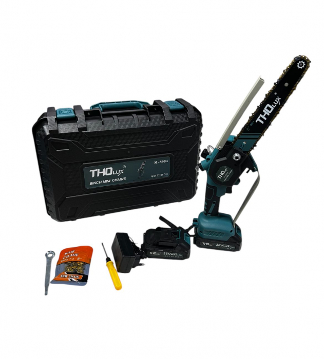 Mini drujba este echipată cu acumulatori de mare capacitate, asigurând o autonomie extinsă și performanță constantă. Cutia de transport inclusă facilitează depozitarea și transportul, iar designul compact al lamei permite tăieri precise și eficiente.