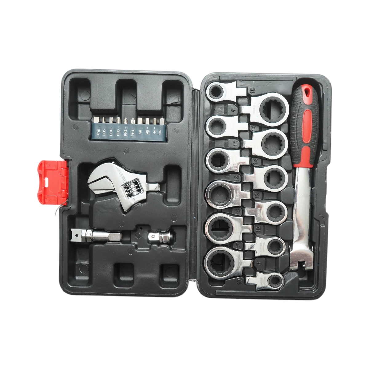 Trusa chei inelare cu clichet 8-19mm, cheie reglabila, biti hex, drepti, cruce 26 piese Breckner Germany