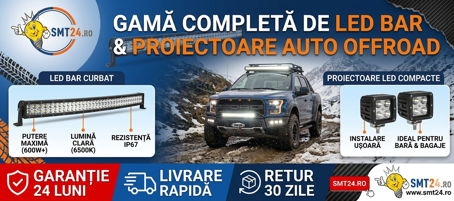 FiltreTransformă noaptea în zi cu gama profesională de iluminat LED auto de pe SMT24.ro. Fie că ești pasionat de aventuri off-road, conduci un vehicul de intervenție sau ai nevoie de lumină suplimentară pentru utilaje agricole și camioane, selecția noastră de LED Bar-uri și proiectoare auto îți garantează performanță și siguranță pe orice traseu.https://www.smt24.ro/led-bar-proiectoare-auto