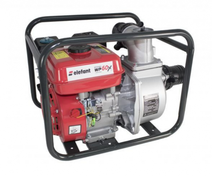 Motopompa pe benzina Elefant WP30XMotopompa pe benzina Elefant WP30X cu motor in 4 timpi ce dezvolta 6,5 Cai Putere. Este o pompa de debit mare, avand caile de intrare/iesire de 2 toli. Setul include si conectiunile pentru furtun impreuna cu coliere. Principiul de functionare presupune amorsarea care se poate efectua prin orificiul de 25 mm la fiecare pornire. Motorul functioneaza in regim 4T si este dotat cu buton de pornire oprire chiar pe carcasa motorului. Baia de ulei este dotata cu doua joje, de ambele parti pentru acces usor. Atat motorul cat si capul pompei este turnat din fonta. Scheletul de sustinere este sudat din teava metalica si este prevazut cu 4 tampoane din cauciuc pentru atenuarea vibratiilor. Pompa poate fi transportata fara efort excesiv si folosita pentru vidanjarea zonelor inundate sau golire rapida a rezervoarelor de apa. Setul include un recipient cilindric cu peretii perforati ce se va folosi drept sita de filtrare a particolelor mai mari de 6 mm in diametru. acesta se va monta la capatul de absorbtie a furtunului cu ajutorul colierului metalic. Motopompa Elefant WP30X poate fi o masina extrem de utila in zonele montane sau din vecinatatea raurilor. Poate servi si pentru golirea in timp record gropilor de santier inundate. Debitul maxim atingand 30 metri cubi pe ora.